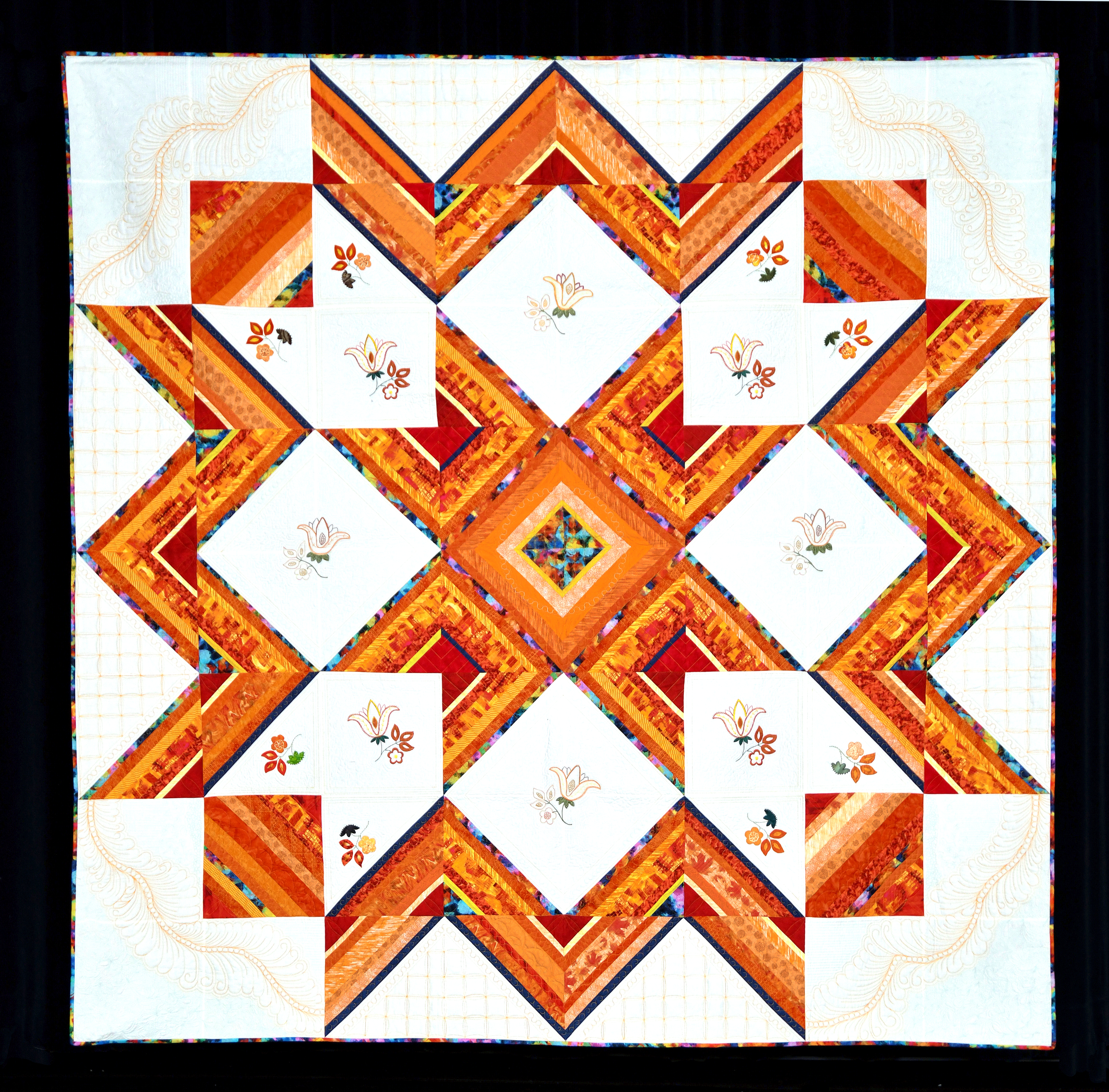 There are three categories that are judged each year in the show: Pieced, Mixed/Other, and Applique. Each category is awarded first through third place, and there is an overall best of show selected, as well as up to three honorable mentions. The judge also has the option to award the NACQJ Award of Merit which can be awarded to one quilt achieving recognized standards of quilt-making excellence. According to the National Association of Certified Quilt Judges, “The ribbon is not meant to conflict with any other show awards, but will be an encouraging addition to them, at no cost or obligation to the show sponsors. The NACQJ Award of Merit is yet another way NACQJ strives to recognize and reward fine quilts.”