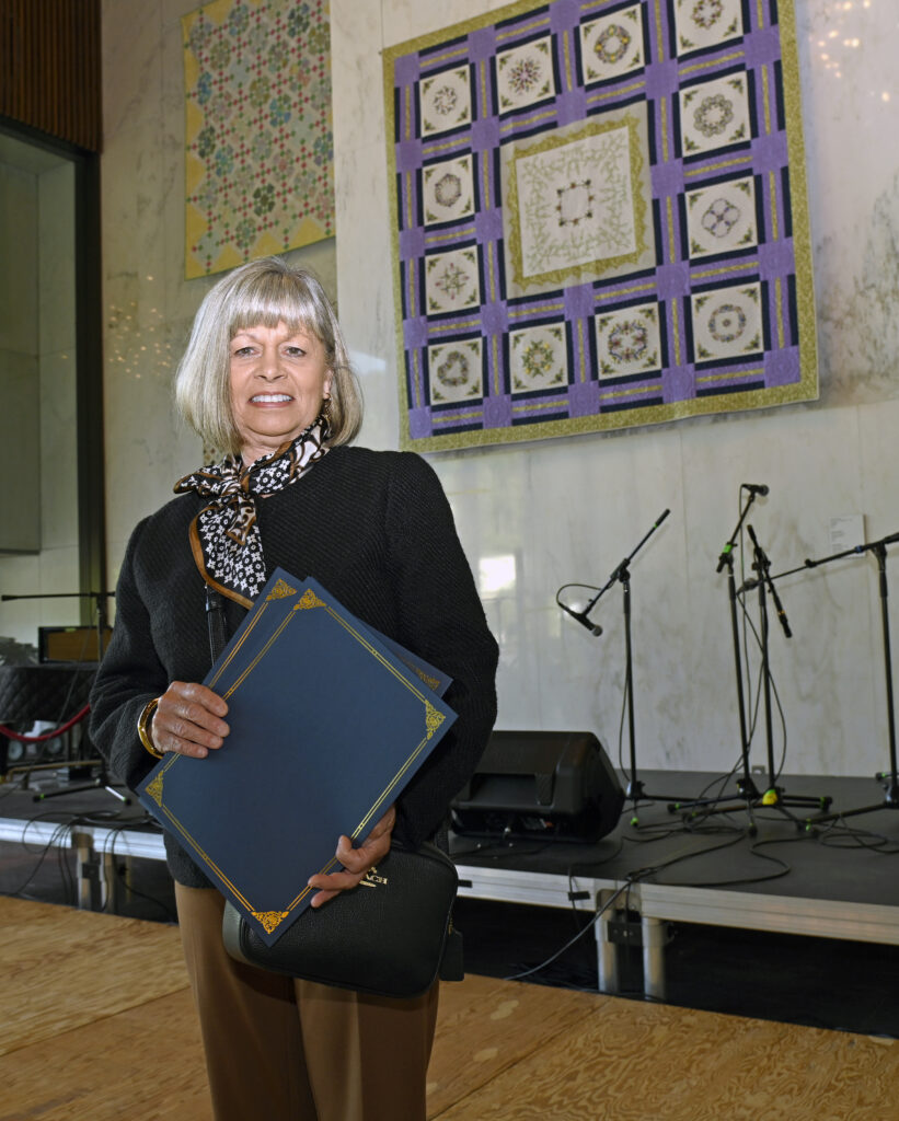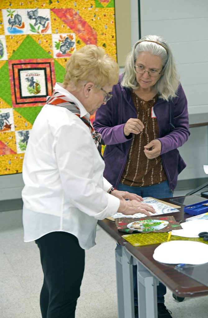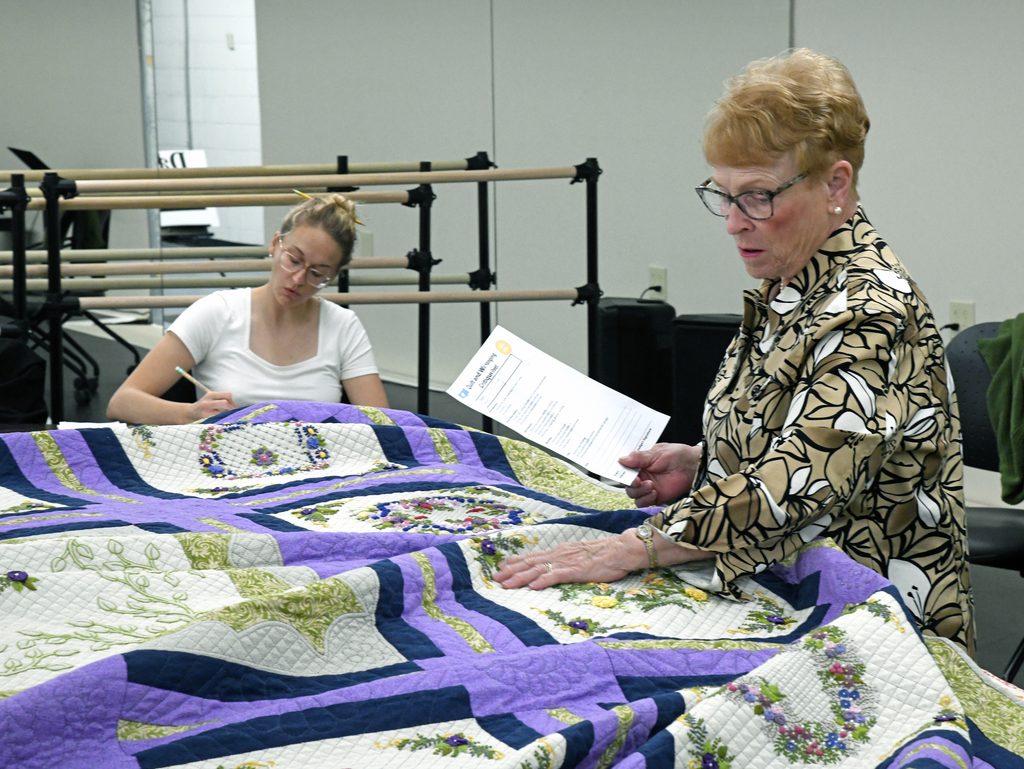 In 2025 the exhibit was juried by Mary M. Zesiger, a judge from the National Association of Certified Quilting Judges. Mary has been quilting seriously since 1980. She was a member of the National Quilting Association for over twenty nine years, became an NQA Certified Teacher in 1991 and served as the NQA Certified Teacher Coordinator for 2 years. She began judging in 1996, judging local and regional quilt shows; completed NQA Judging Certification in 2006 and Masters Judging Certification in 2009. Each year the judge also teaches a workshop that is free for interested quilters to attend.