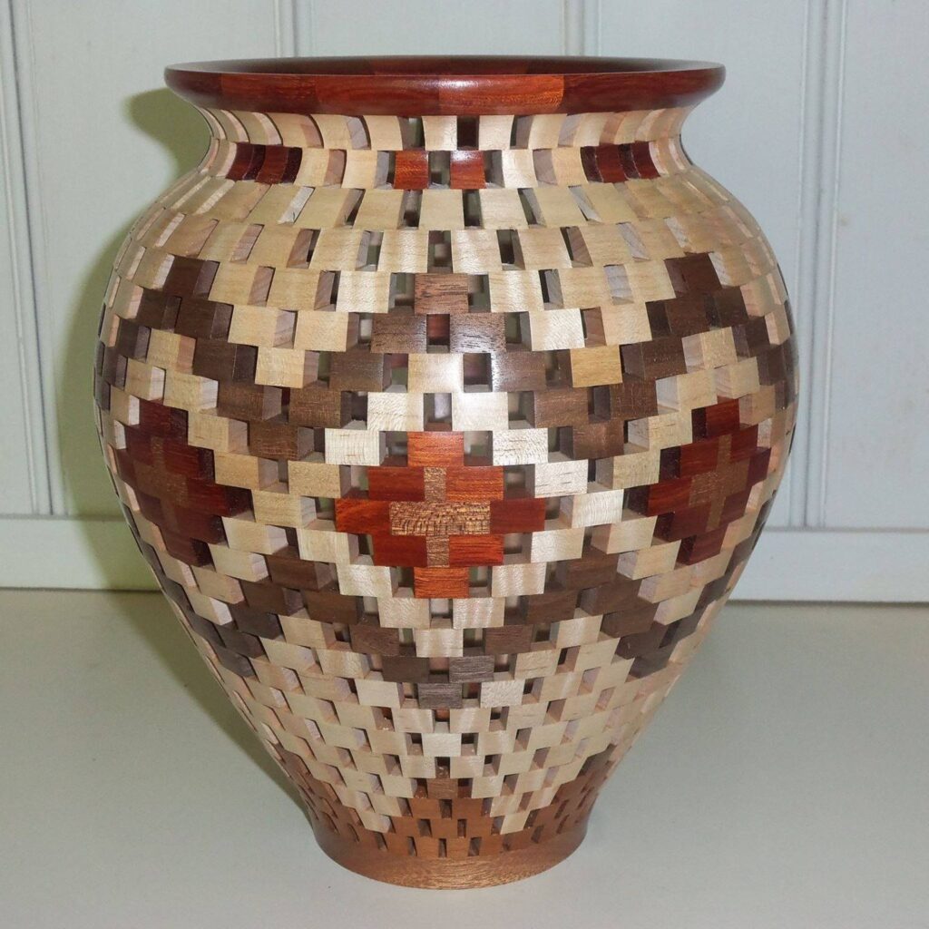 Jerry Smith, Joe’s brother, is also an acclaimed woodturner who is known to be artistic and uses thin and natural edge pieces of wood in his work. That led Ervin to a segmented style of woodturning that required the use of printed instructions by Masters like Malcolm Tibbetts and William Smith. As the internet continued to expand as a resource, Ervin also learned more by watching YouTube videos in his spare time.