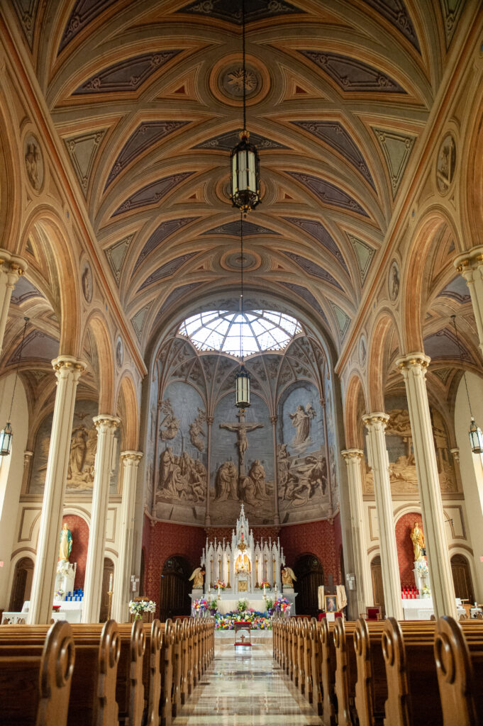 Patrick C. Keely of New York City, a renowned Catholic architect of the time, was hired to build “a towering building in the center of a mostly non-Catholic town that would soar to the heavens—an imposing Catholic monument,” Nedeff said. The congregation, led by Father Henry Parke, wanted a building/church that would foster reflection and wonder and lift their hearts and minds to God, Nedeff said.